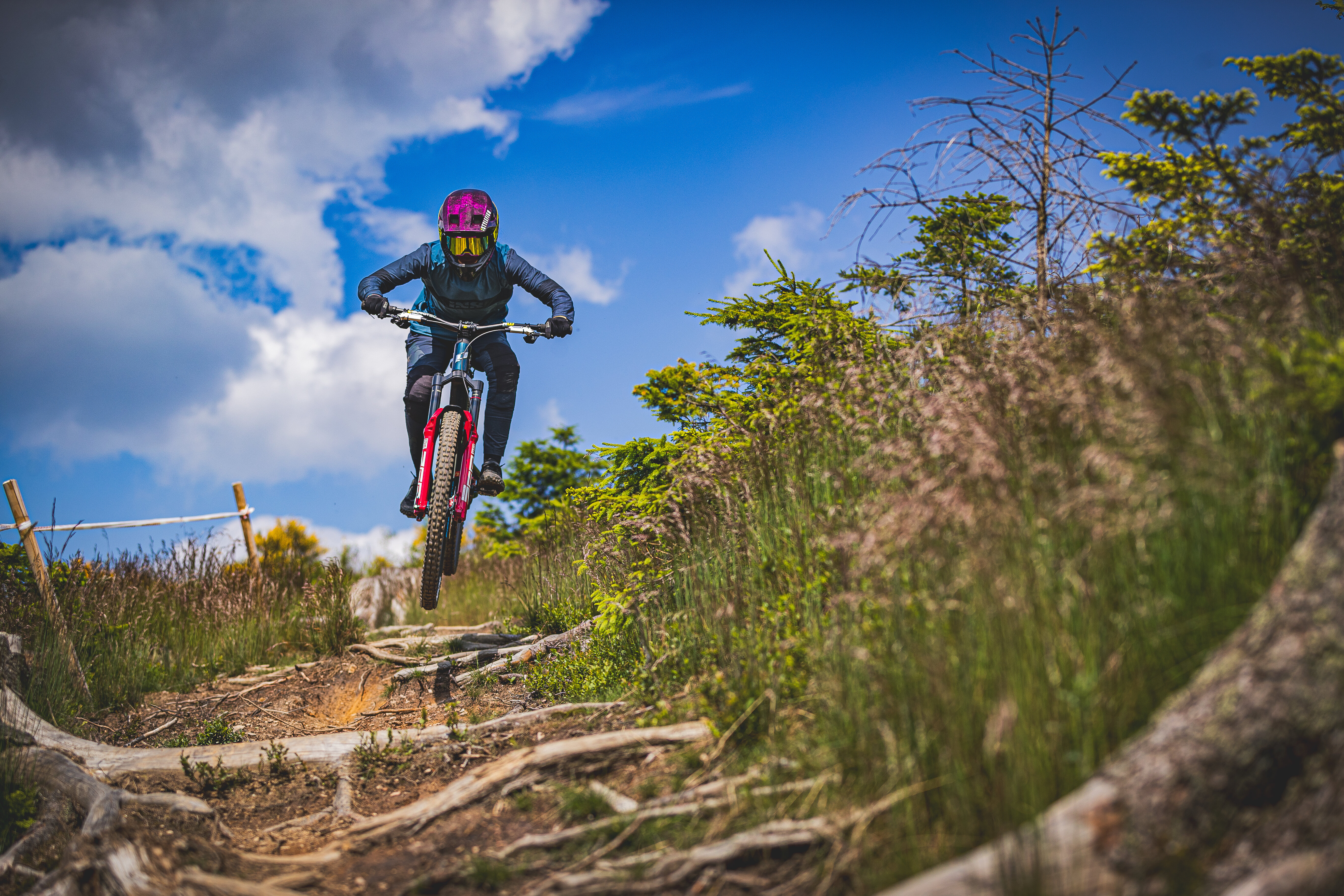 Neu dazugekommen ist 2025 die Jolli Jumper: unsere erste Line, in der Du innerhalb derselben Strecke unterschiedliche Schwierigkeitsgrade wählen kannst – blauer Absprung neben rotem, damit Du selbst entscheidest, wie weit Du gehen, oder besser gesagt – springen - willst. Euer Feedback war hier ziemlich eindeutig: gute Übergänge, stimmige Sprünge, hoher Spaßfaktor – und für viele genau der richtige Spot, um Airtime und Technik zu trainieren, ohne dass es direkt „all in“ sein muss. Für alle, die sich noch vorsichtig an Sprünge herantasten, haben wir außerdem die FlyBy gebaut – eine blaue Jumpline als Ergänzung zu Schneewittchen- und Fairy-Trail, damit der Einstieg in Airtime leichter wird und Du Dich Schritt für Schritt steigern kannst.